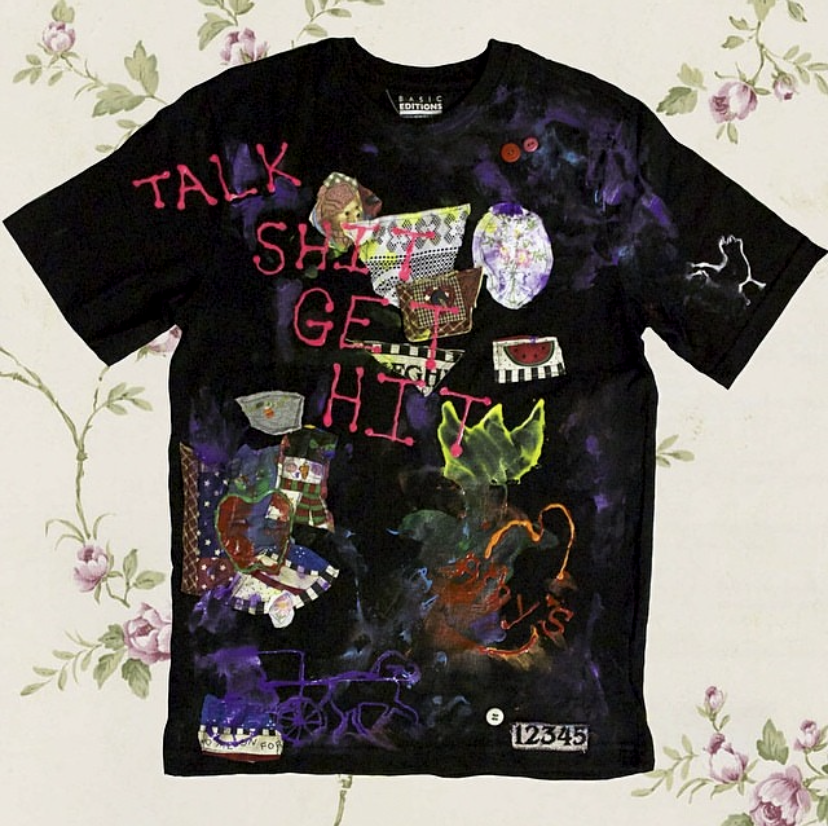 2014 sewn patches and puffy paint on shirt SIZE M I made this with my mom